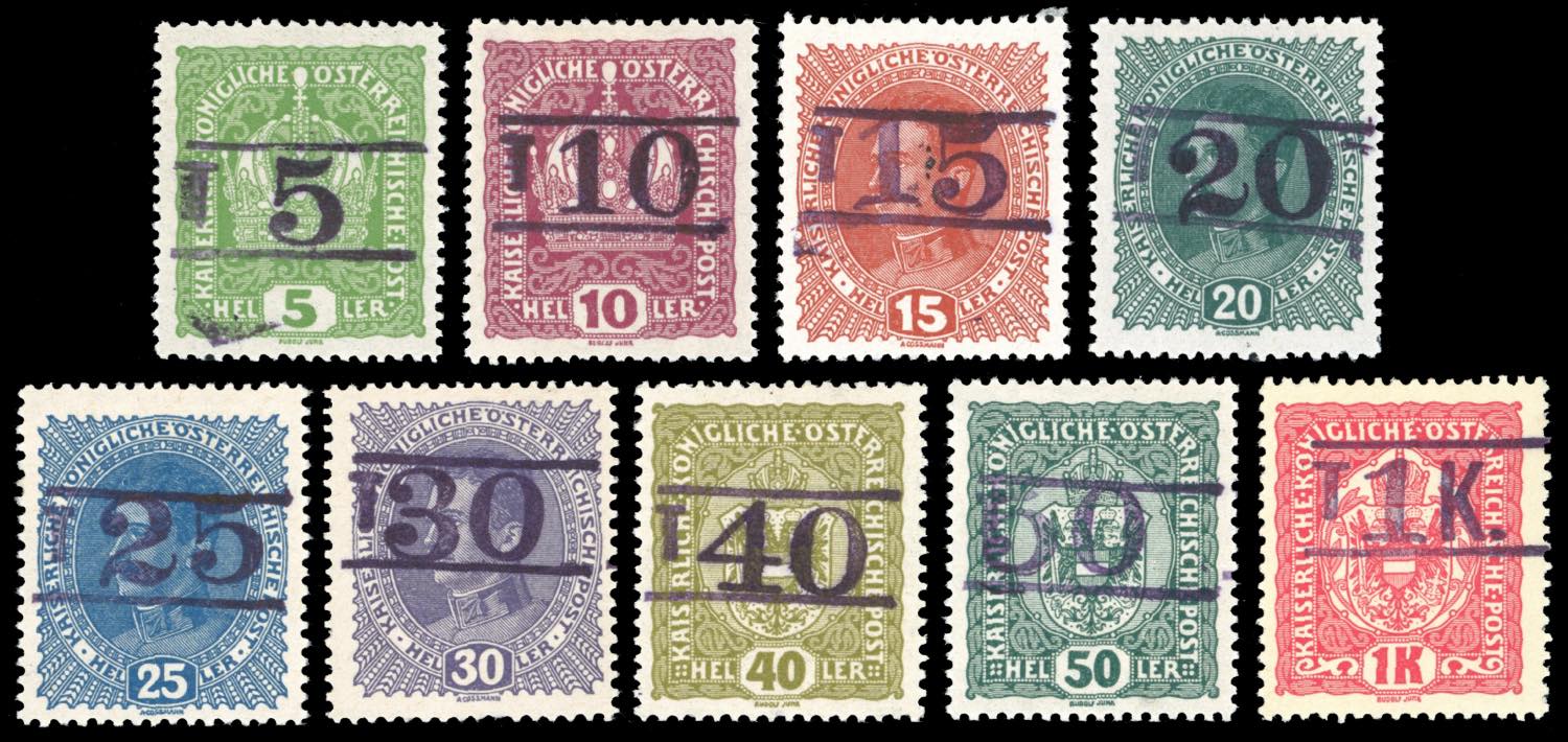 TRENTINO ALTO ADIGE-SEGNATASSE BOLZANO 1919 - Francobolli d'Austria soprastampati, serie completa (BZ3/1-9), nuovi, gomma originale, ... Leggi tutto