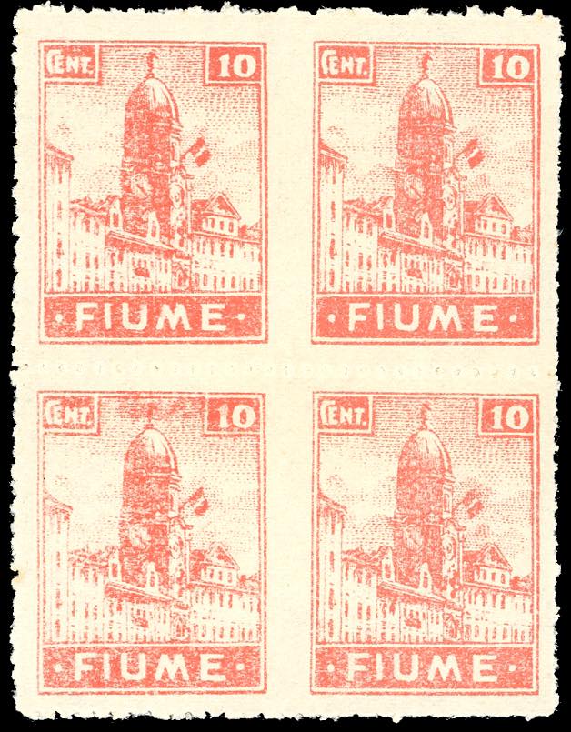 Lotto 2509 - FIUME 1919 - 10 cent. Allegorie e Vedute, carta C, blocco ...