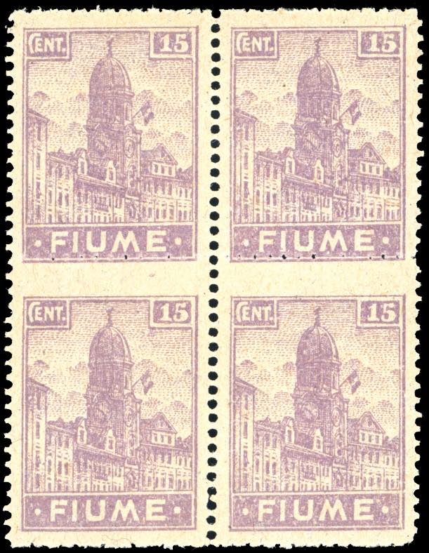 Lotto 2513 - FIUME 1919 - 15 cent. Allegorie e Vedute, carta A, blocco ...