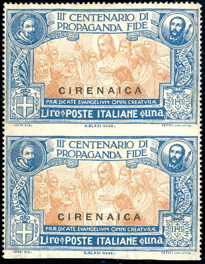 Lotto 3399 - 1923 - 1 lira Propaganda Fide, coppia verticale non ...