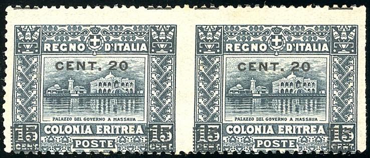 1916 - 20 su 15 cent. Soggetti Africani soprastampato, coppia orizzontale con il primo esemplare non dentellato a destra ed il secondo non ... Leggi tutto