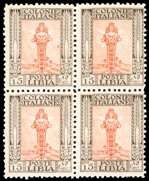 1926 - 15 cent. Pittorica, dent. 11, senza filigrana (62), blocco di quattro, gomma originale integra, perfetto e molto fresco. Raro. Cert. ... Leggi tutto