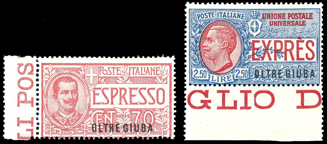ESPRESSI 1926 - Soprastampati, serie completa (1/2), bordo di foglio, gomma originale integra, perfetti. Ferrario.