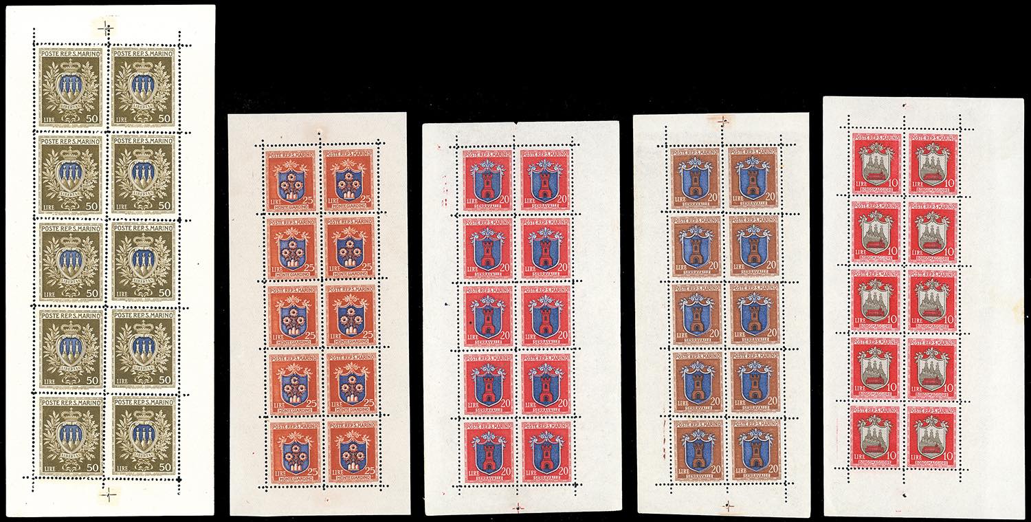 Lotto 4101 - 1945/46 - Stemmi, minifogli, serie completa (1/5), nuovi, ...