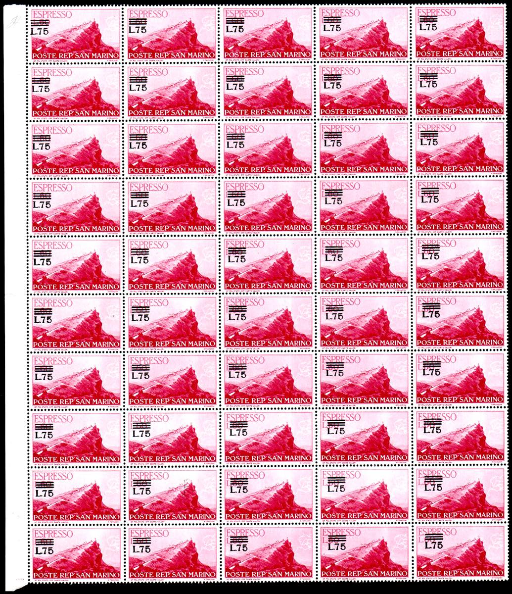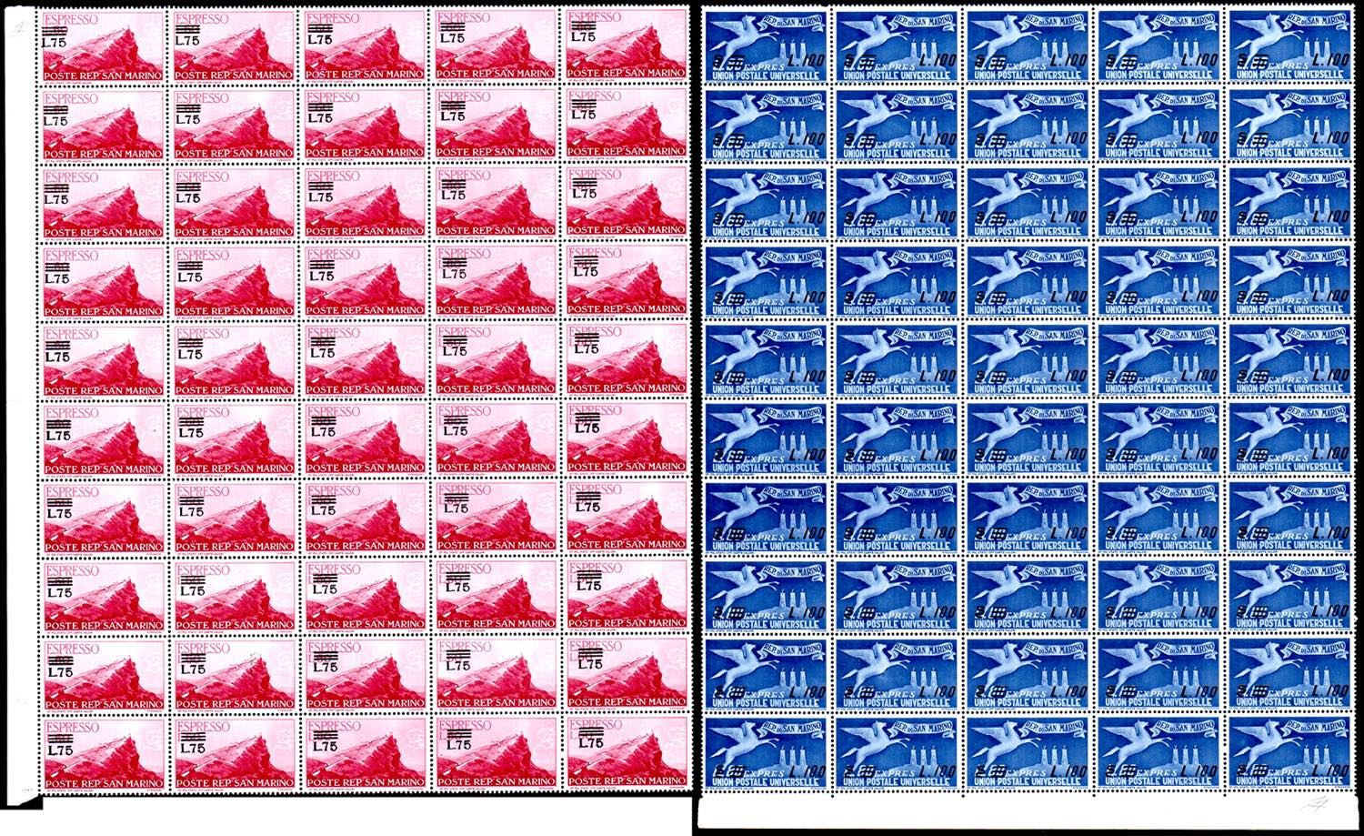 1957 - Soprastampati, serie completa (23/24), fogli di 50 esemplari, gomma originale integra, perfetti e di ottima qualità. Ferrario.