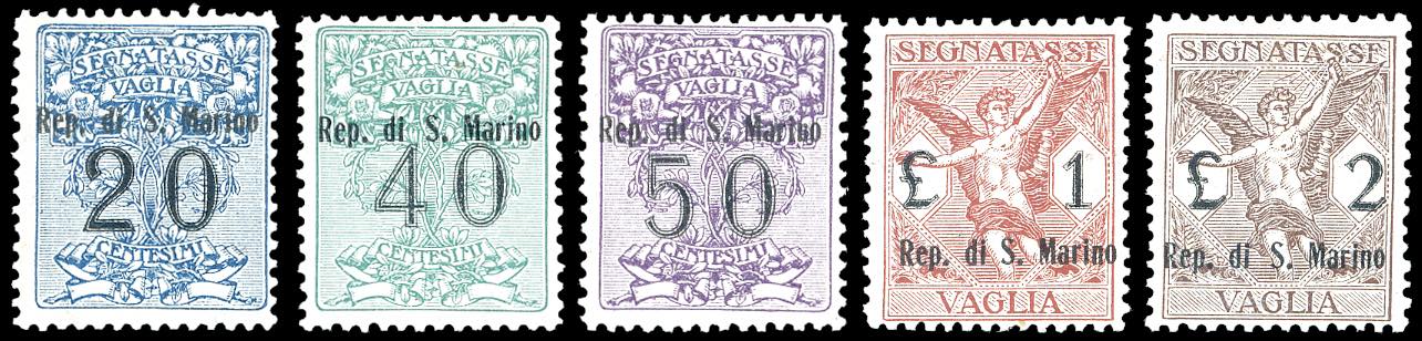 1924 - Soprastampati, serietta di 5 valori (1/5), nuovi, gomma originale integra, perfetti, buona/ottima centratura. G.Oliva, A.Diena, fotocopia cert. Caffaz della serie completa. (Cat.Sassone € 3.250/6.500).