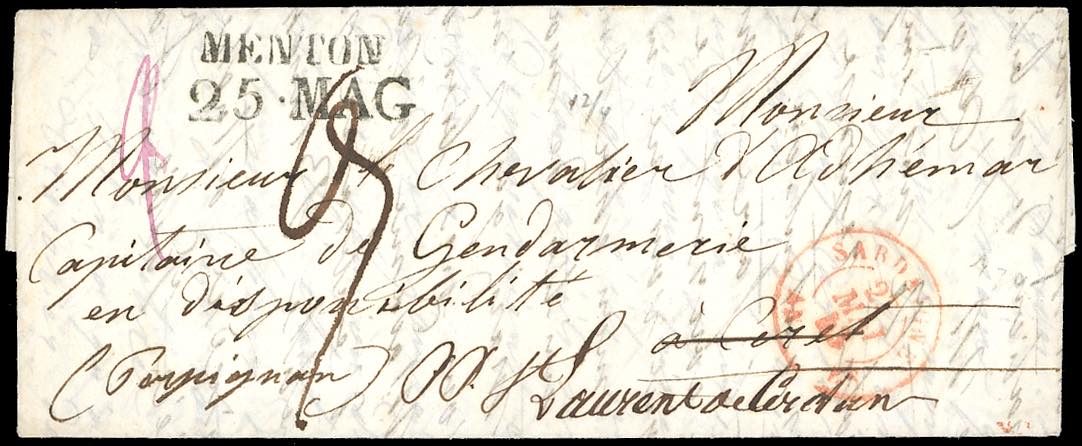Lotto 4320 - MONACO 1843 - Lettera prefilatelica da Mentone 25/5/1843 a ...