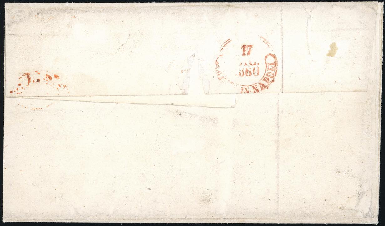 1860 - 1 grano rosa carminio, II tavola (4), striscia orizzontale di quattro, perfetta, su sovracoperta di lettera da Gioja 14/12/1860 ... Leggi tutto
