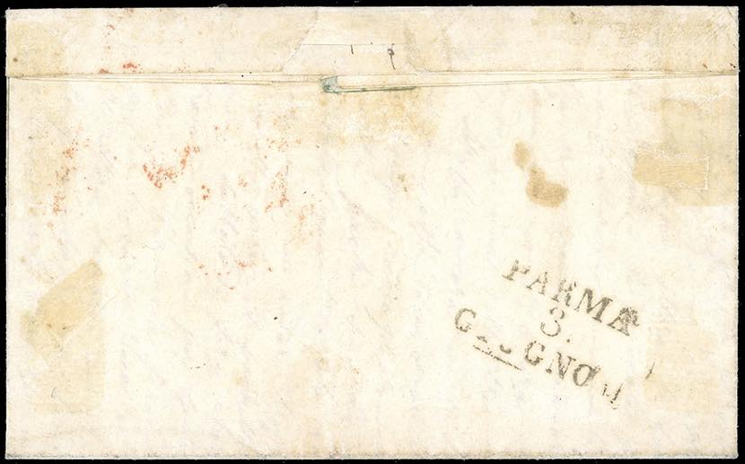 1852 - 15 cent. rosa (3), bordo di foglio in basso, perfetto, su fresca lettera da Piacenza 2/6/1852 a Parma, bollo di arrivo al verso del ... Leggi tutto