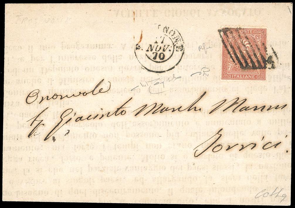 Lotto 435 - 1870 - 2 cent. De La Rue, tiratura di Torino (T15a), ...
