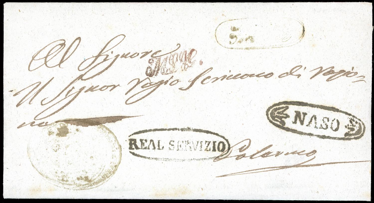 1839 - Fresca lettera prefilatelica da Naso 1/10/1839, ovale con fregi e "Real Servizio" anch'esso in ovale, a Palermo. Impronta eccezionalmente nitida di questo pregevole bollo. Ottima qualità.
