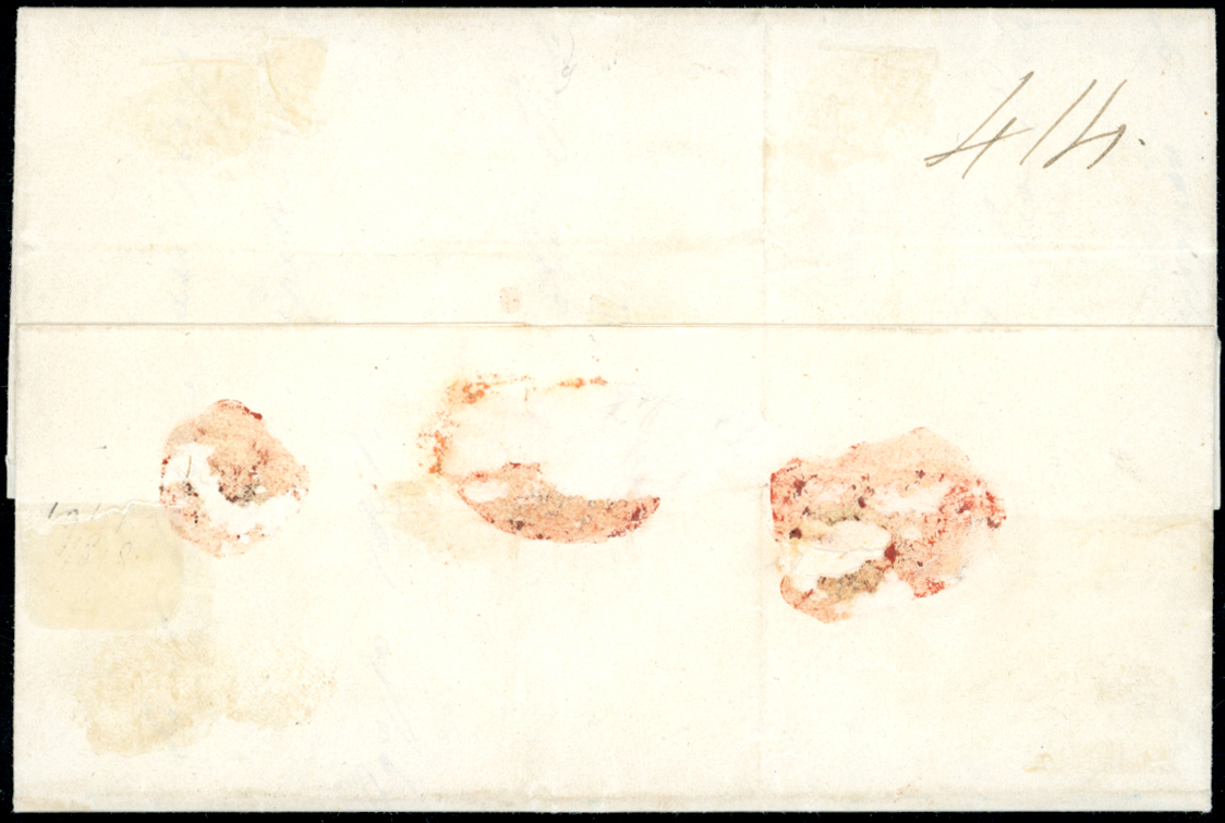 CASTROGIOVANNI (ENNA), ferro di cavallo + ovale senza fregi + assicurata, punti R3 - 10 cent. due esemplari ben marginati, uno apposto a cavallo di piega del foglio preesistente, perfetti, e 20 cent., corto in basso (14C,15D), su fresca lettera del 8/8/1861 per Nicosia. Spettacolare ed unica con tali tre bolli. Alberto ed Enzo Diena, Gaggero. Ex collez. Nino Aquila.