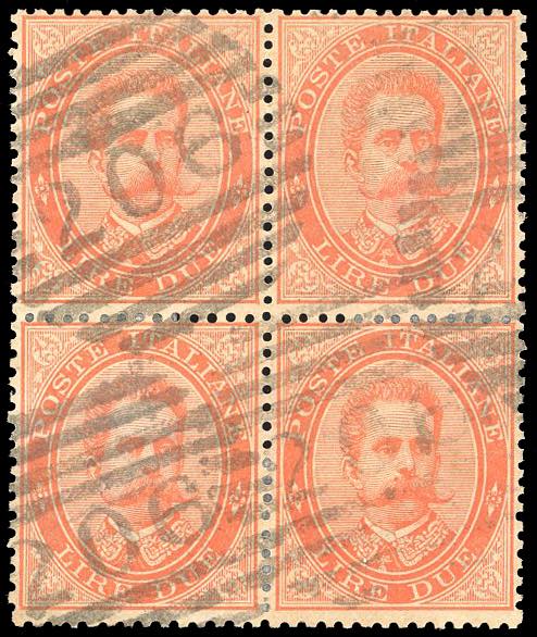 Lotto 853 - 1879 - 2 lire vermiglio, Umberto I (43), eccezionale blocco ...
