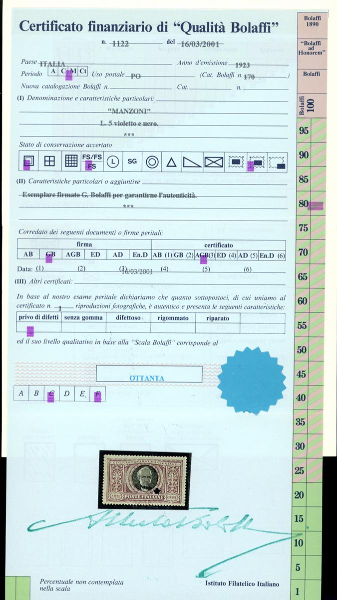 Lotto 957 - 1923 - Manzoni, serie completa (151/156), gomma originale ...