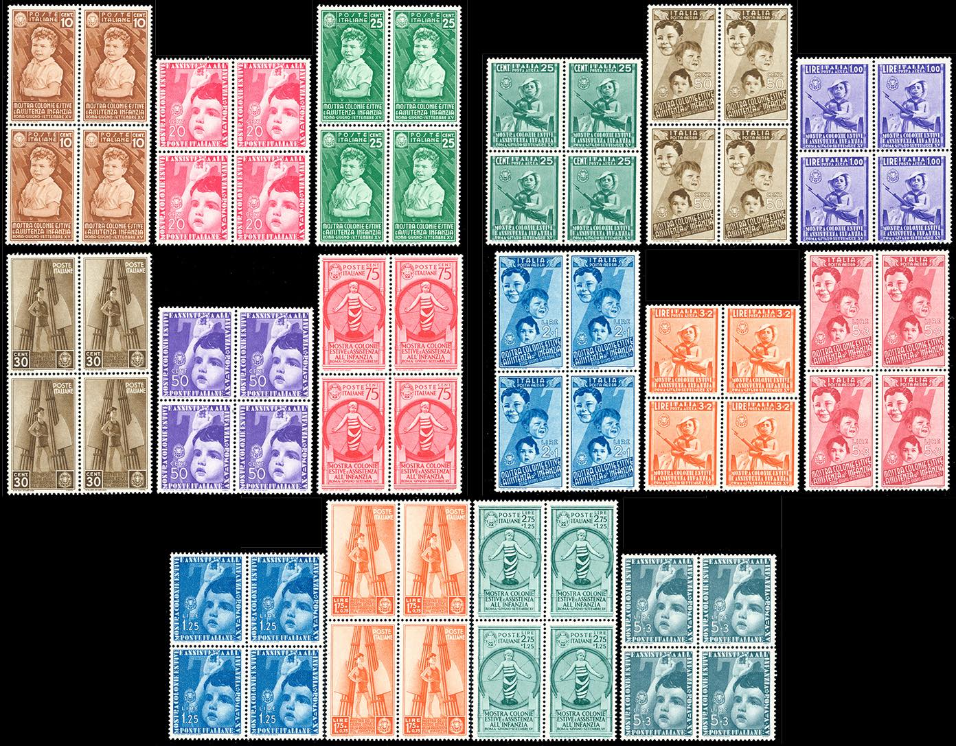 Lotto 1044 - 1937 - Colonie Estive, serie completa (406/415+A), blocchi ...