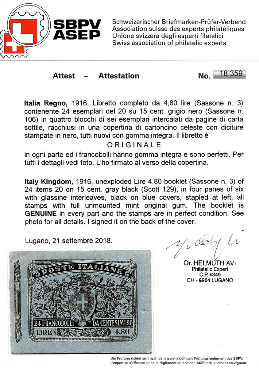 Lotto 1124 - 1916 - 20 cent. su 15 cent. Michetti, libretto completo di ...