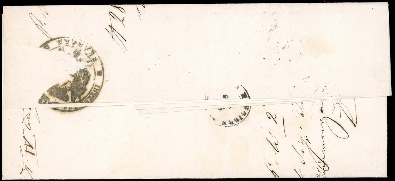 1875 - 0,20 cent. lacca (3), perfetto, su fresca lettera da Ferrara 1/1/1875 a Portomaggiore. Rara lettera risalente al PRIMO GIORNO ... Leggi tutto