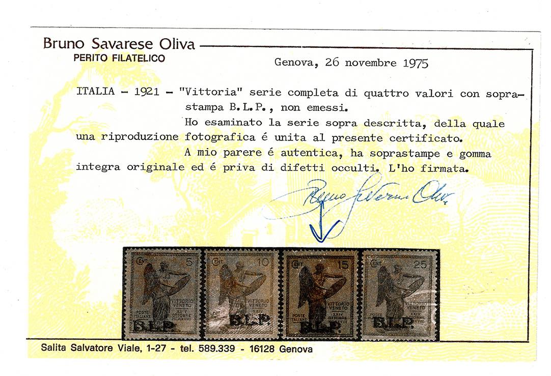 1922 - 15 cent. Vittoria, non emesso, soprastampa BLP (24), nuovo, gomma originale integra, perfetto. Ottima qualità. Fiecchi, cert. Ferrario.