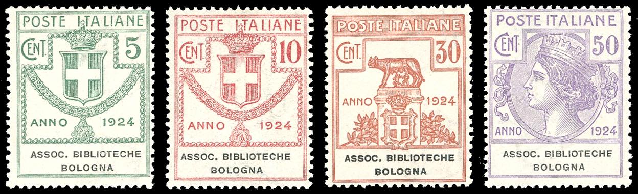 ASSOC.BIBLIOTECHE BOLOGNA 1924 - Serie completa (1/4), nuovi, gomma originale integra, perfetti. Molto freschi, centratura sopra la media. Ferrario.