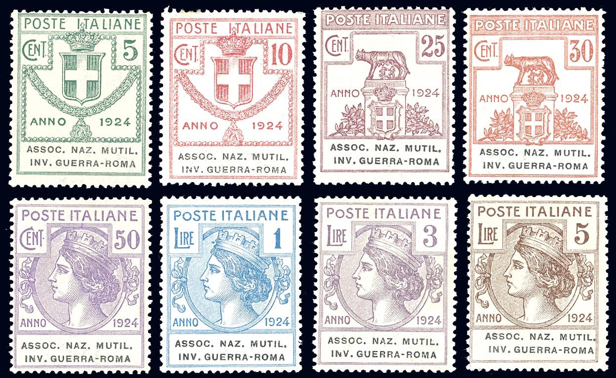 ASSOC.NAZ.MUTIL.INV.GUERRA-ROMA 1924 - Serie completa (5/12), nuovi, gomma originale integra, perfetti. Il 3 lire ottimamente centrato. ... Leggi tutto