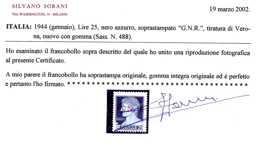 Lotto 1350 - 1944 - Soprastampati G.N.R., tiratura di Verona, serie ...