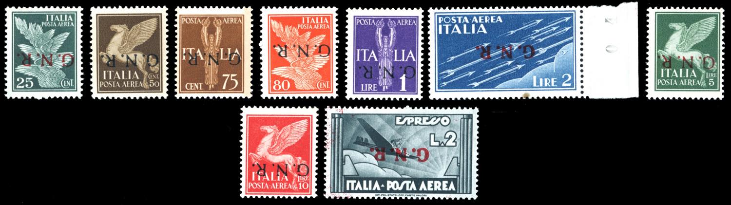 1944 - Soprastampati G.N.R. di Verona, serie completa con la soprastampa capovolta (117a/125a), gomma originale integra, perfetti, piccolo ... Leggi tutto