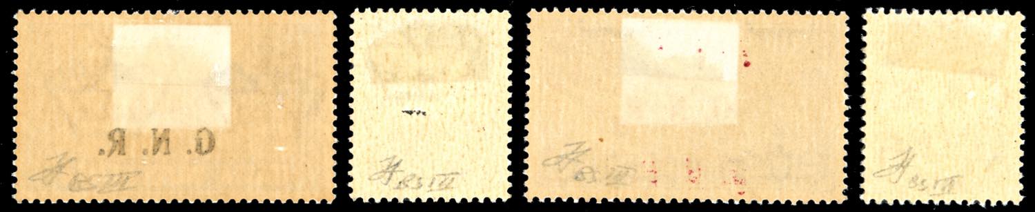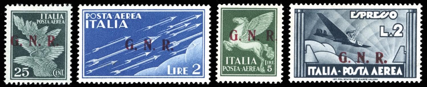 1943 - Soprastampati G.N.R. di Brescia, III tipo, serie completa (117/III,122/III,123/III,125/III), gomma originale, perfetti. Rari. Cert. ... Leggi tutto