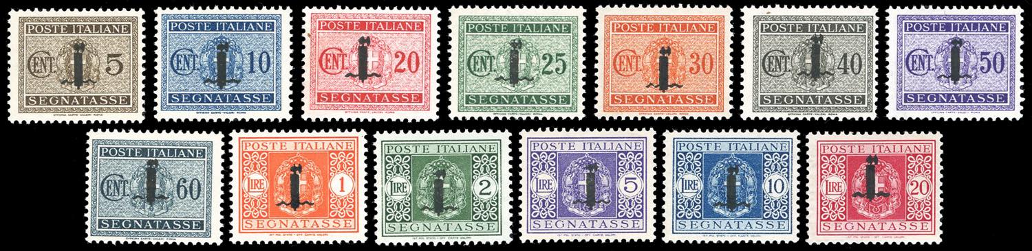 1944 - Soprastampati fascetto, serie completa (60/72), nuovi, gomma originale integra, perfetti, centratura sopra la media. Fiecchi e ... Leggi tutto