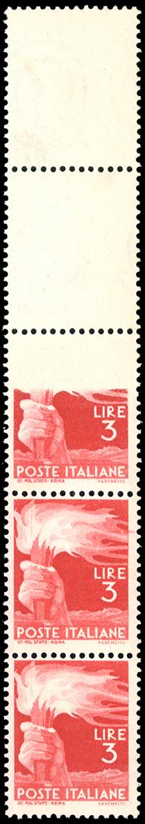 Lotto 1457 - 1945 - 3 lire Democratica (553g), striscia verticale di ...