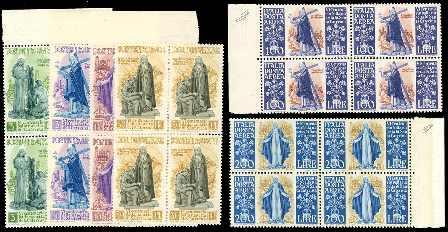 1948 - Santa Caterina, serie completa (574/577+A), blocchi di quattro, quasi tutti bordo di foglio, nuovi, gomma originale integra, ... Leggi tutto