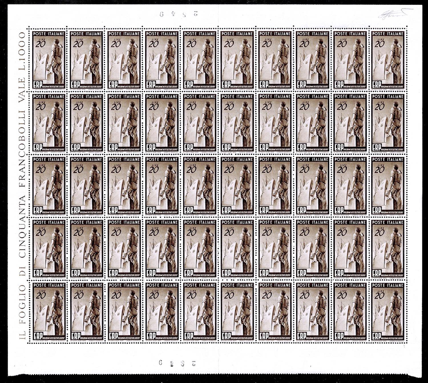 Lotto 1486 - 1949 - ERP, serie completa (601/603), fogli di 50 esemplari ...