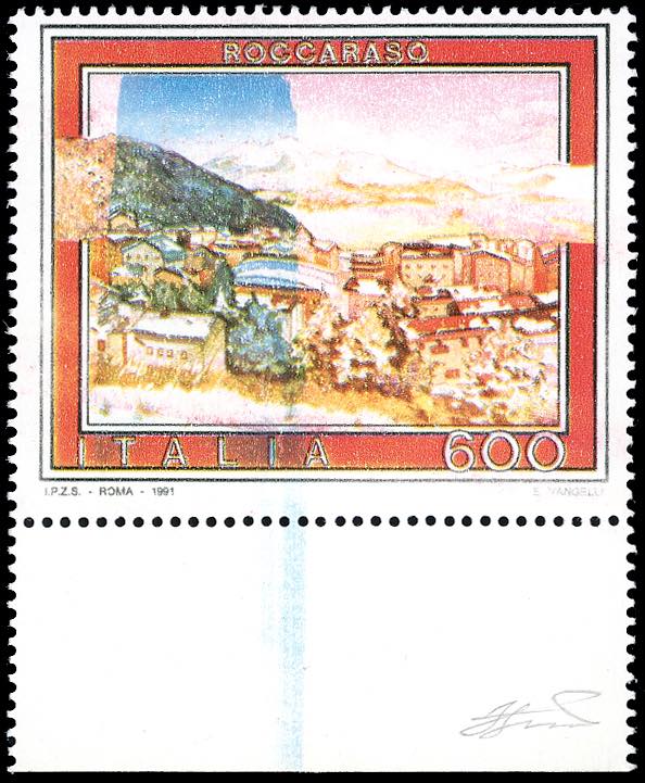 Lotto 1532 - 1991 - 600 lire Roccaraso, stampa dell'azzurro incompleta ...