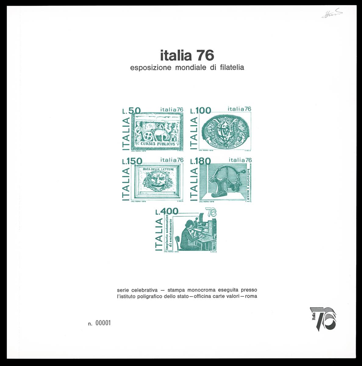 Lotto 1553 - 1976 - Italia'76, foglietti speciali (1), prove di stampa ...