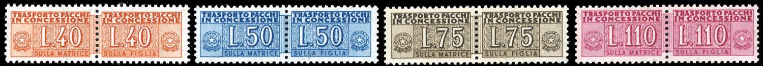1955 - 40 lire, 50 lire, 75 lire e 110 lire, filigrana stelle (5,6,9,12), ben centrati, nuovi, gomma originale integra, perfetti. Cert. E.Diena per i due alti valori.
