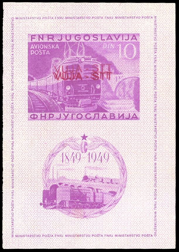 FOGLIETTI 1950 - 10 d. Ferrovie, foglietto non dentellato, tripla soprastampa (2,varietà), gomma originale integra, perfetto. Bella ... Leggi tutto