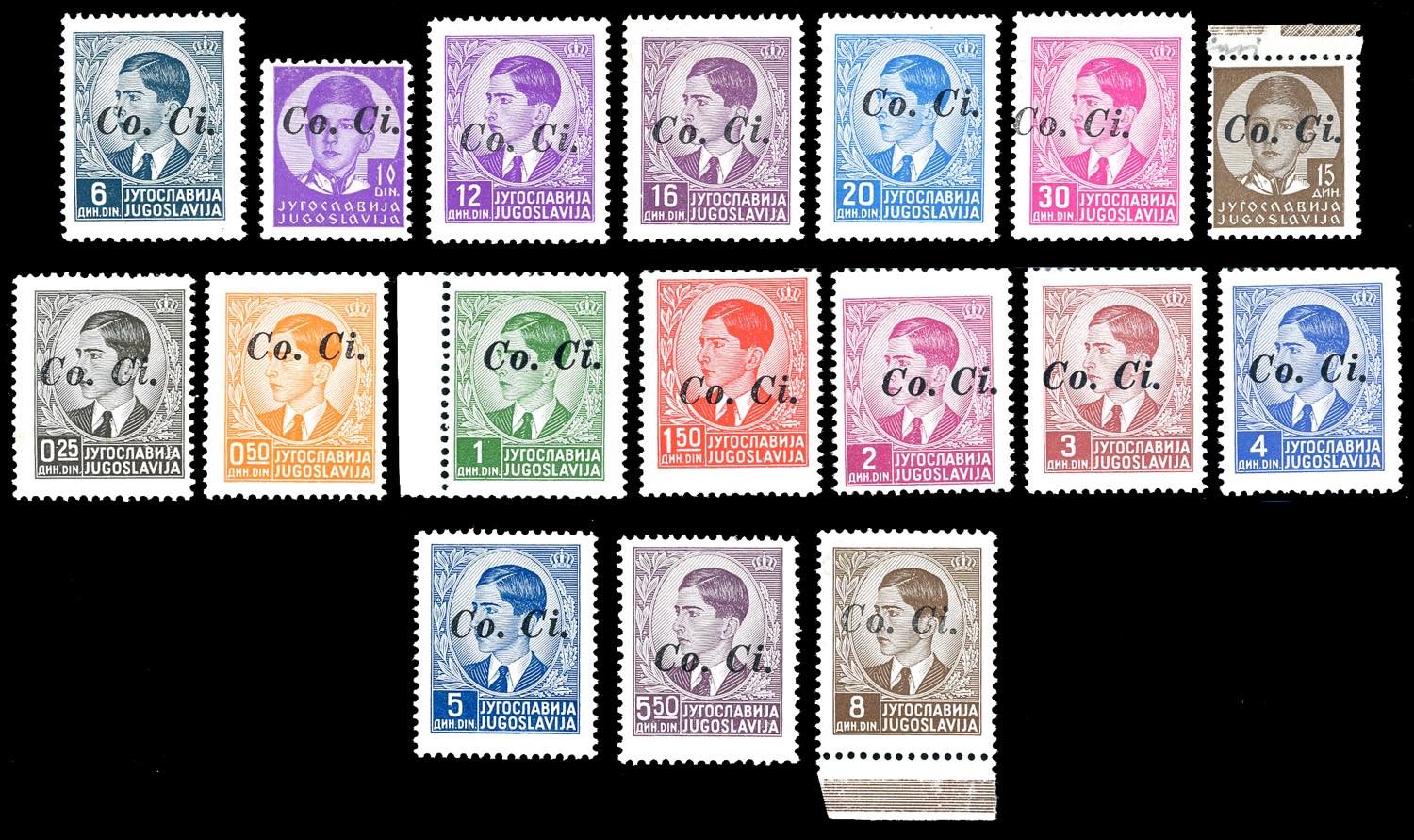 LUBIANA 1941 - Soprastampati "Co.Ci" a macchina, serie completa (1/17), gomma originale integra, perfetti e molto freschi. Ottima qualità. ... Leggi tutto