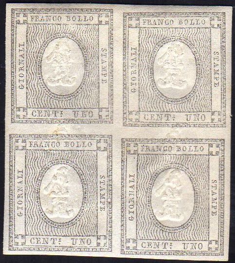 Lotto 626 - 1861 - 1 cent. grigio nero, blocco di quattro con terza ...