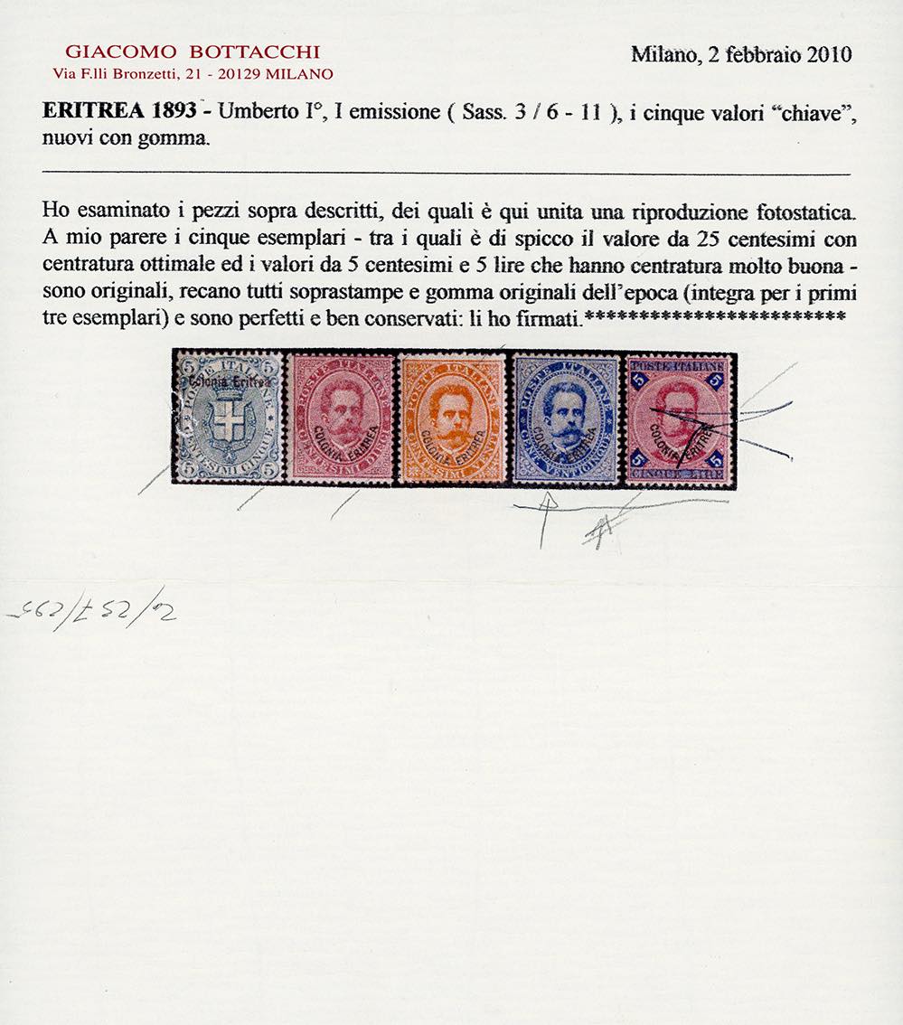 1893 - 25 cent. Umberto I (6), nuovo, gomma originale, leggera traccia di linguella, molto fresco e ben centrato. Cert. Bottacchi.