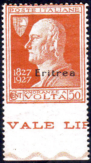 1927 - 50 cent. Volta, non dentellato in basso (121ha), nuovo, gomma originale integra, perfetto. Raro! Ferrario.