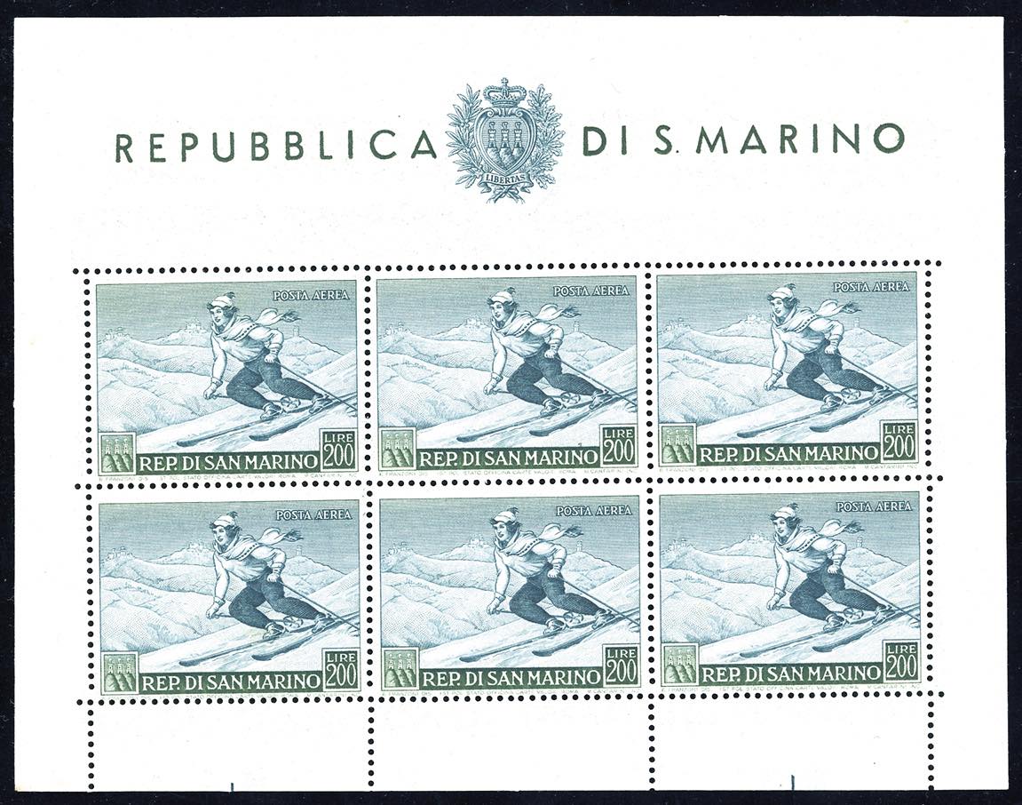 Lotto 2229 - 1953 - 200 lire Sciatrice, foglietto (15), nuovo, gomma ...