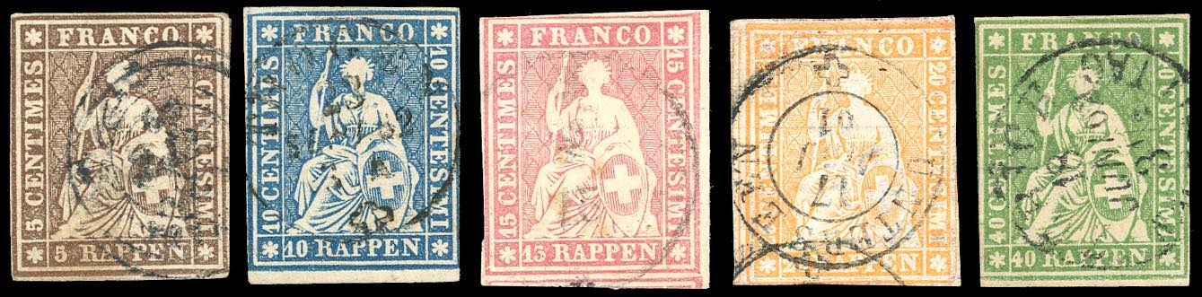 Lotto 2361 - SVIZZERA 1854/1862 - Strubel, cinque valori della serie ...