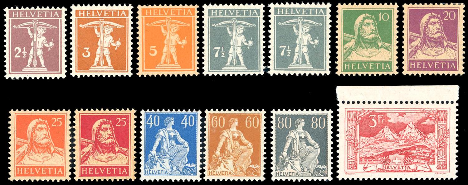 Lotto 2384 - SVIZZERA 1916/22 - Serie completa di 12 valori e 7 1/2 ...
