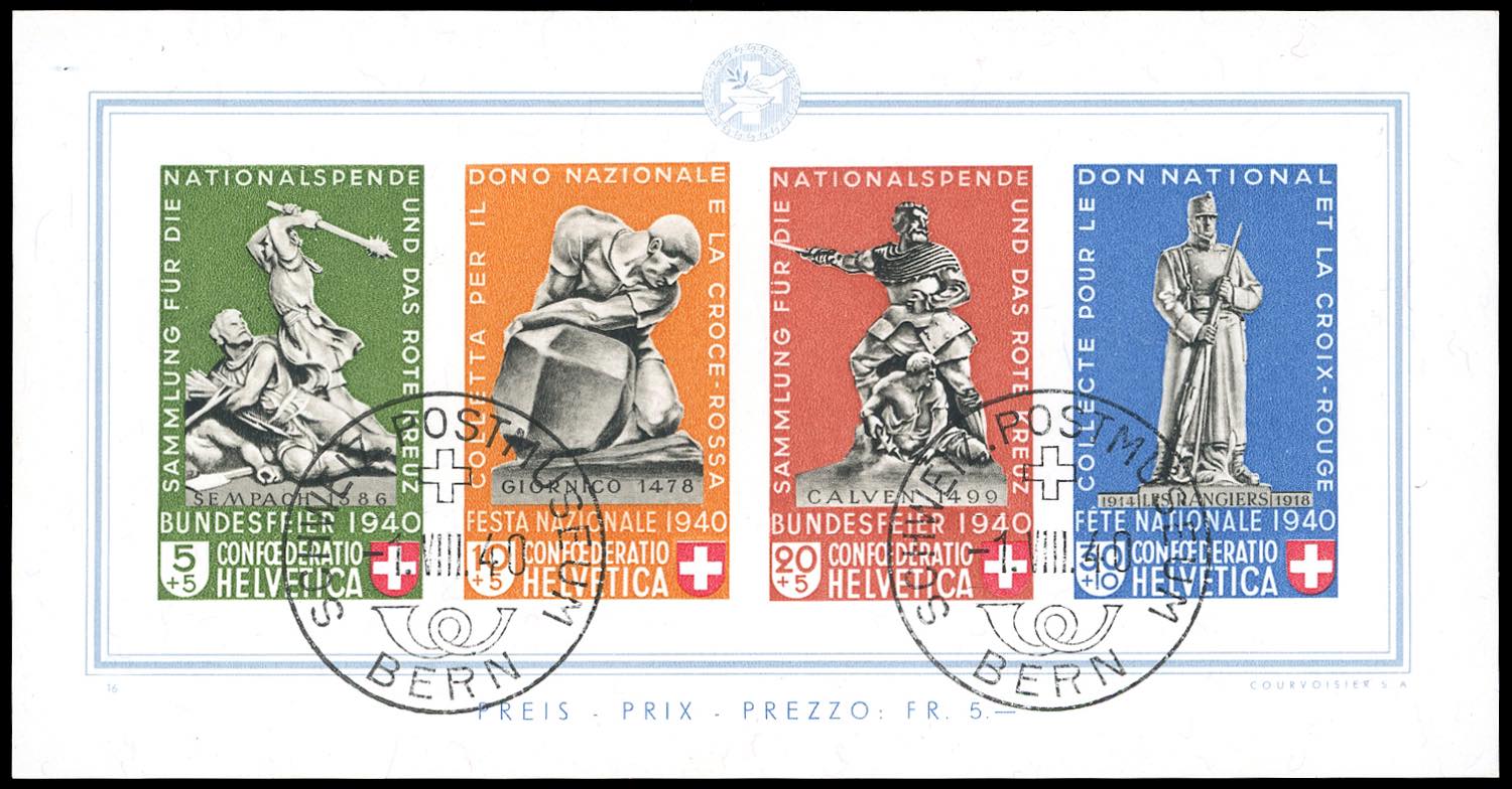 SVIZZERA FOGLIETTI 1940 - Pro Patria (Unif.BF5), usato, perfetto, bello. Cert. Renggli.
