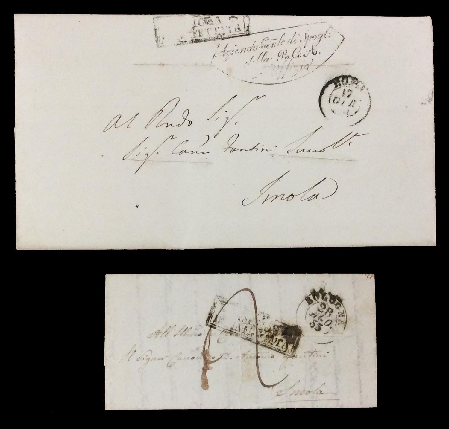 STATO PONTIFICIO SANITA' 1837/1867 - Bell'insieme di 15 lettere prefilateliche o non affrancate del periodo, tutte con bolli e/o tagli di disinfezione. Qualche ripetizione, ma notate diverse interessanti presenze.