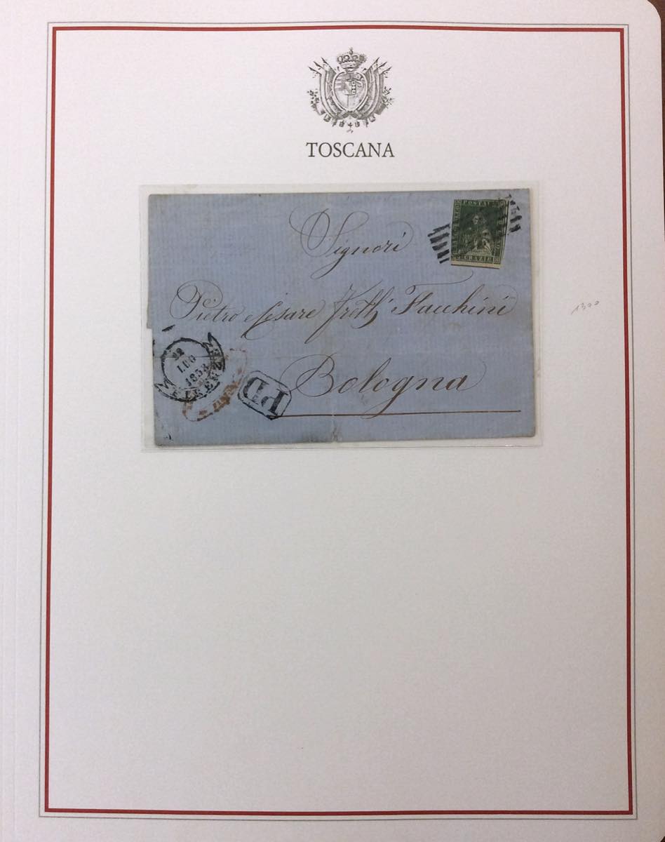 TOSCANA 1809/1861 - Lotto di nove lettere o frontespizi con affrancature del periodo e dodici lettere prefilateliche, in fogli d'album.
