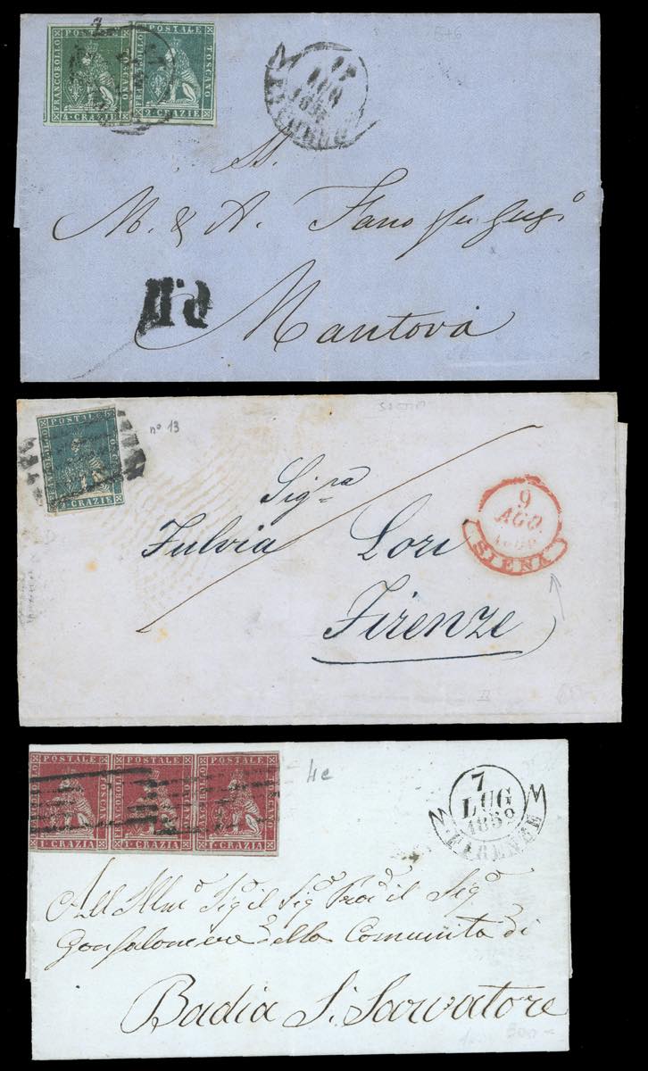 Lotto 2452 - TOSCANA 1852/1859 - Bell'insieme di 14 lettere affrancate ...