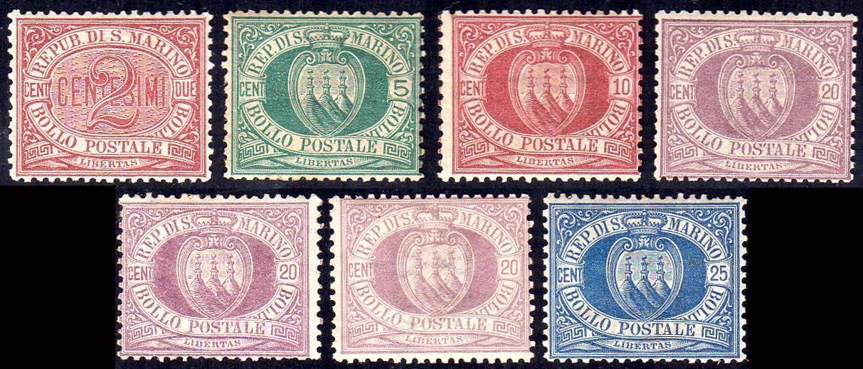 SAN MARINO 1894/1999 - Piccolo insieme di esemplari dell'emissione (26,27,28x3,30), gomma originale, integra per tre esemplari, perfetti.