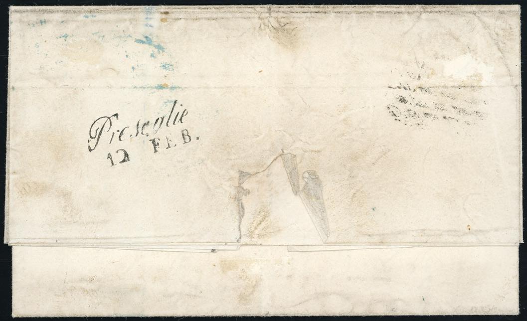 1857 - 40 cent. azzurro scuro, punto vicino al "4" (10b), perfetto, su lettera da Modena 9/2/1857 ad Edolo. Bella e rara! Cert. Ferrario.
