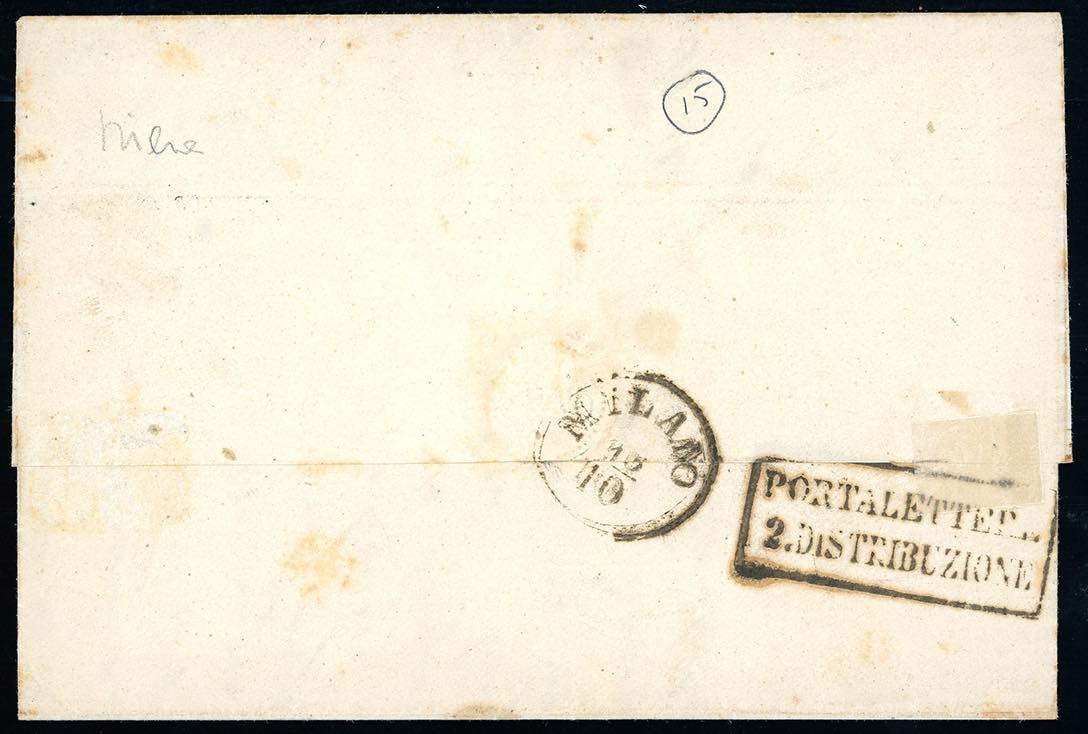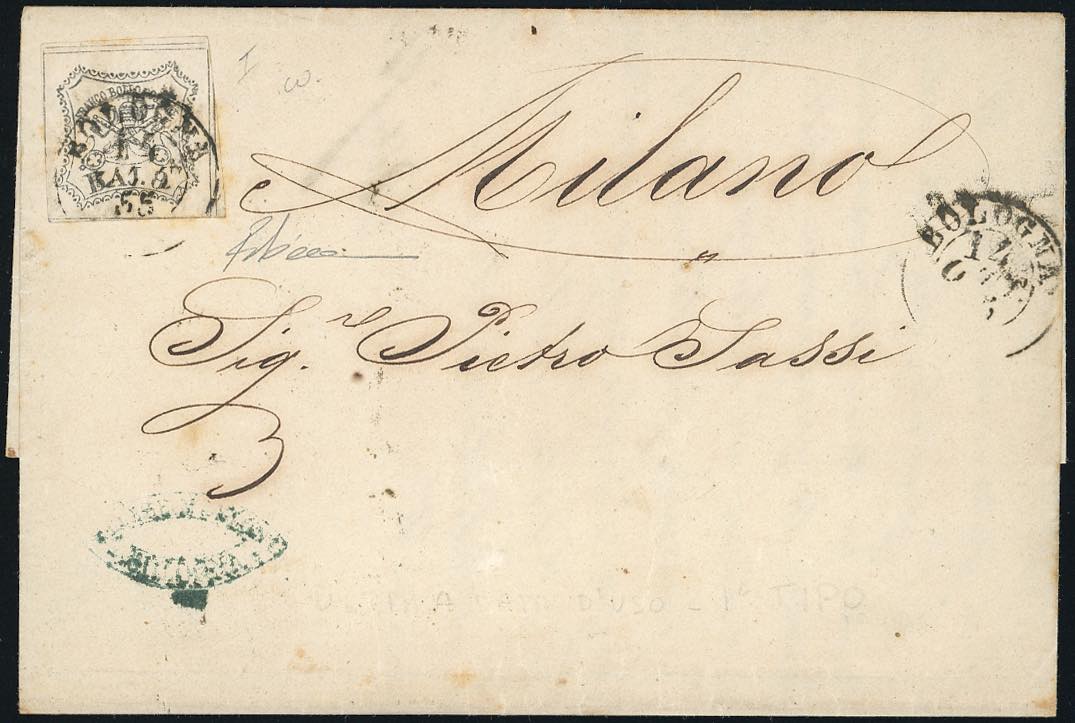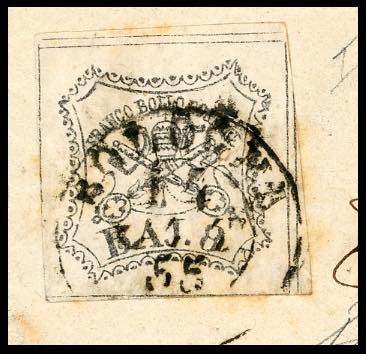Lotto 388 - 1855 - 8 baj bianco, falso per posta di Bologna, I tipo ...