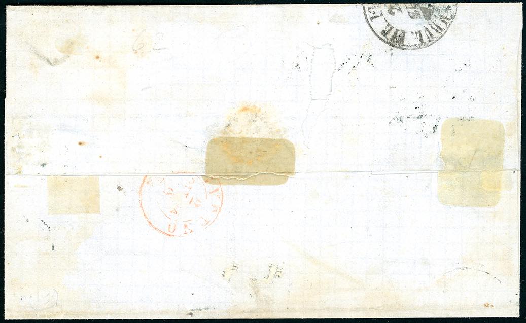 1864 - 2 baj bianco verdastro (3Aa), perfetto, in affrancatura mista con 15 cent. De La Rue (L18), difettoso, probabilmente perché recuperato in frode postale e riutilizzato, su lettera da Roma 1/10/1864 a Livorno, tassata in arrivo 20 cent. Il francobollo italiano non venne annullato in partenza, ma solo in arrivo con il bollo di tassa a tampone 2. Estremamente rara, occasione! Em.Diena, Raybaudi, cert. A.Diena.